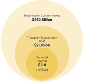 Transplant patients represent annual readmission costs of about $2.2 billion. This is a small percentage compared to the readmission costs of $250 billion for all major surgeries. The generated revenue is only a tiny fraction of the total costs associated with readmissions.
